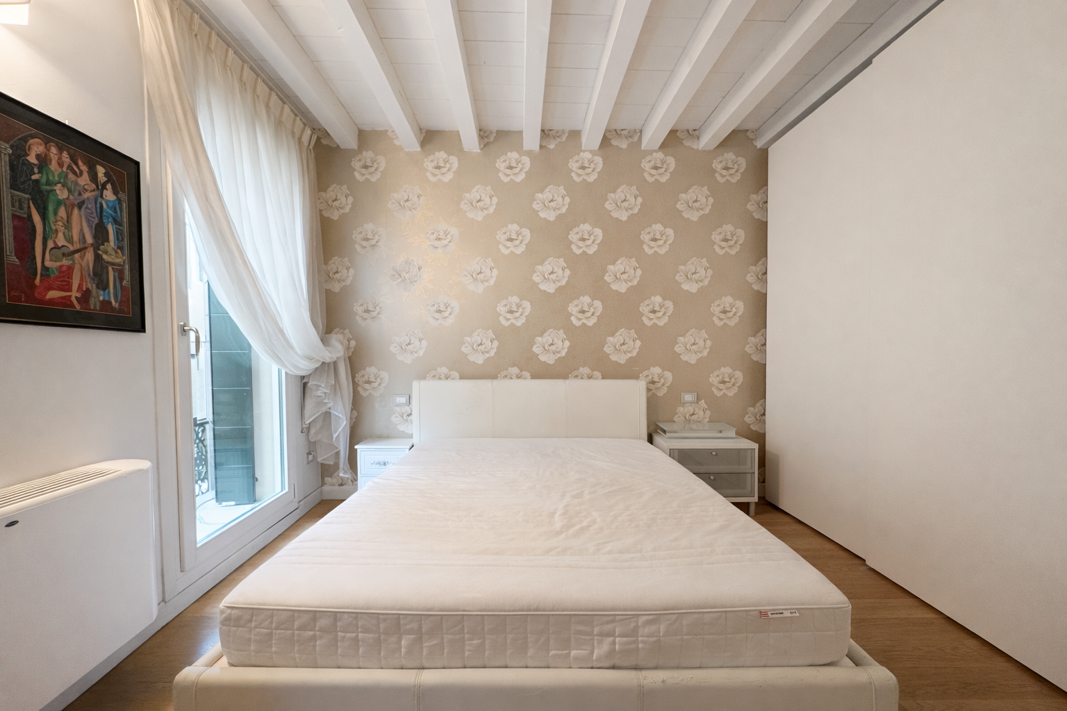 L’appartamento è composto da un ampio soggiorno con cucina a vista, due camere da letto e due bagni.