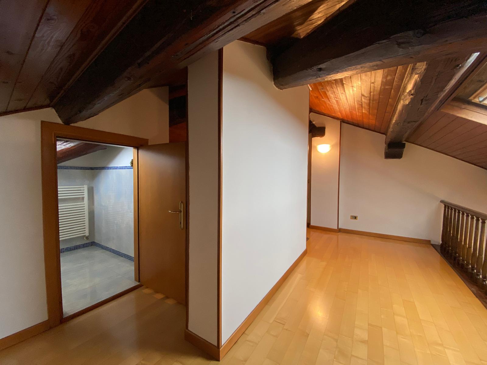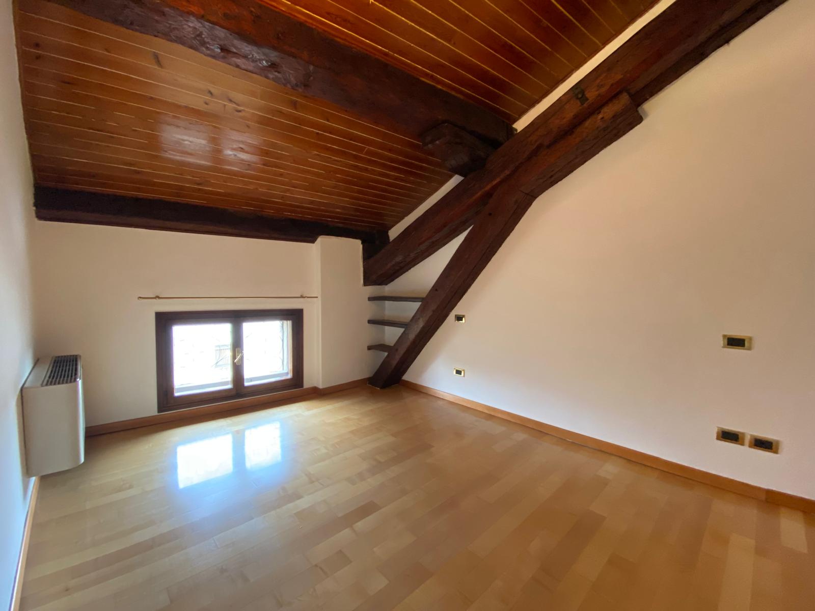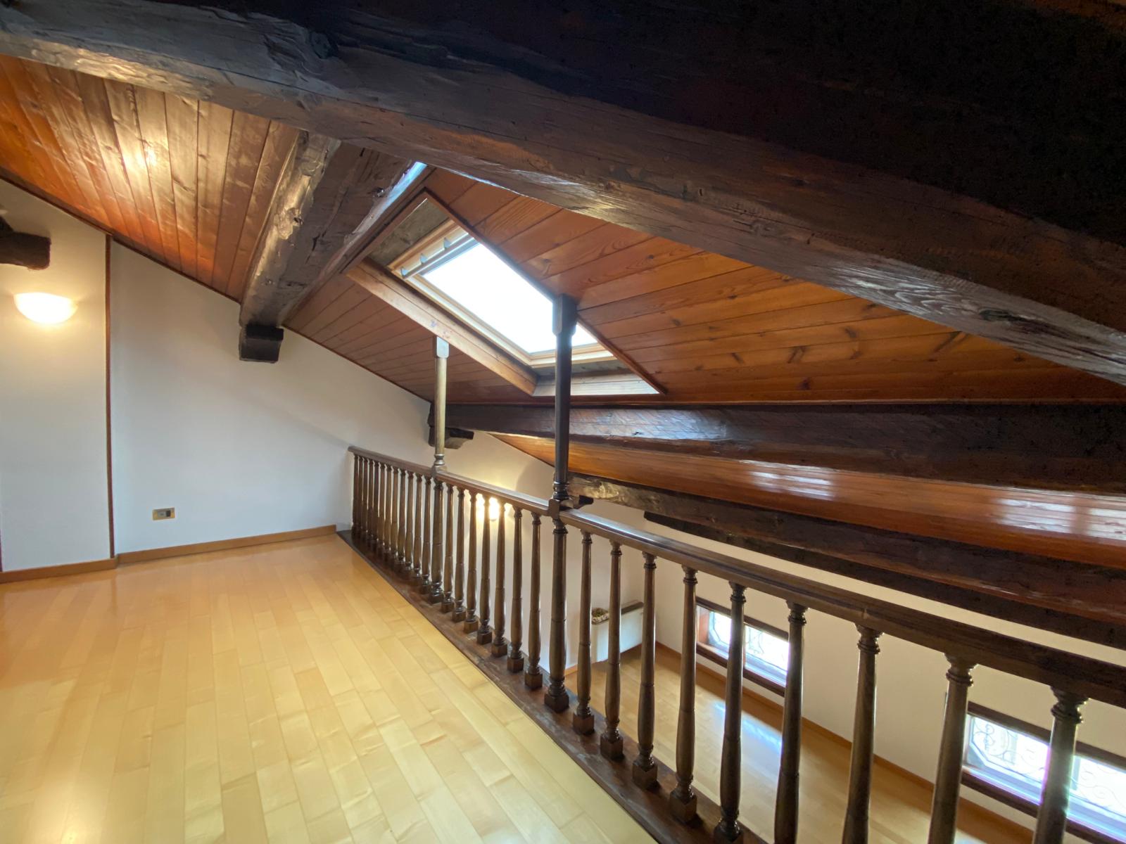 L’appartamento presenta travature a vista, ottime altezze ed è parzialmente arredato.