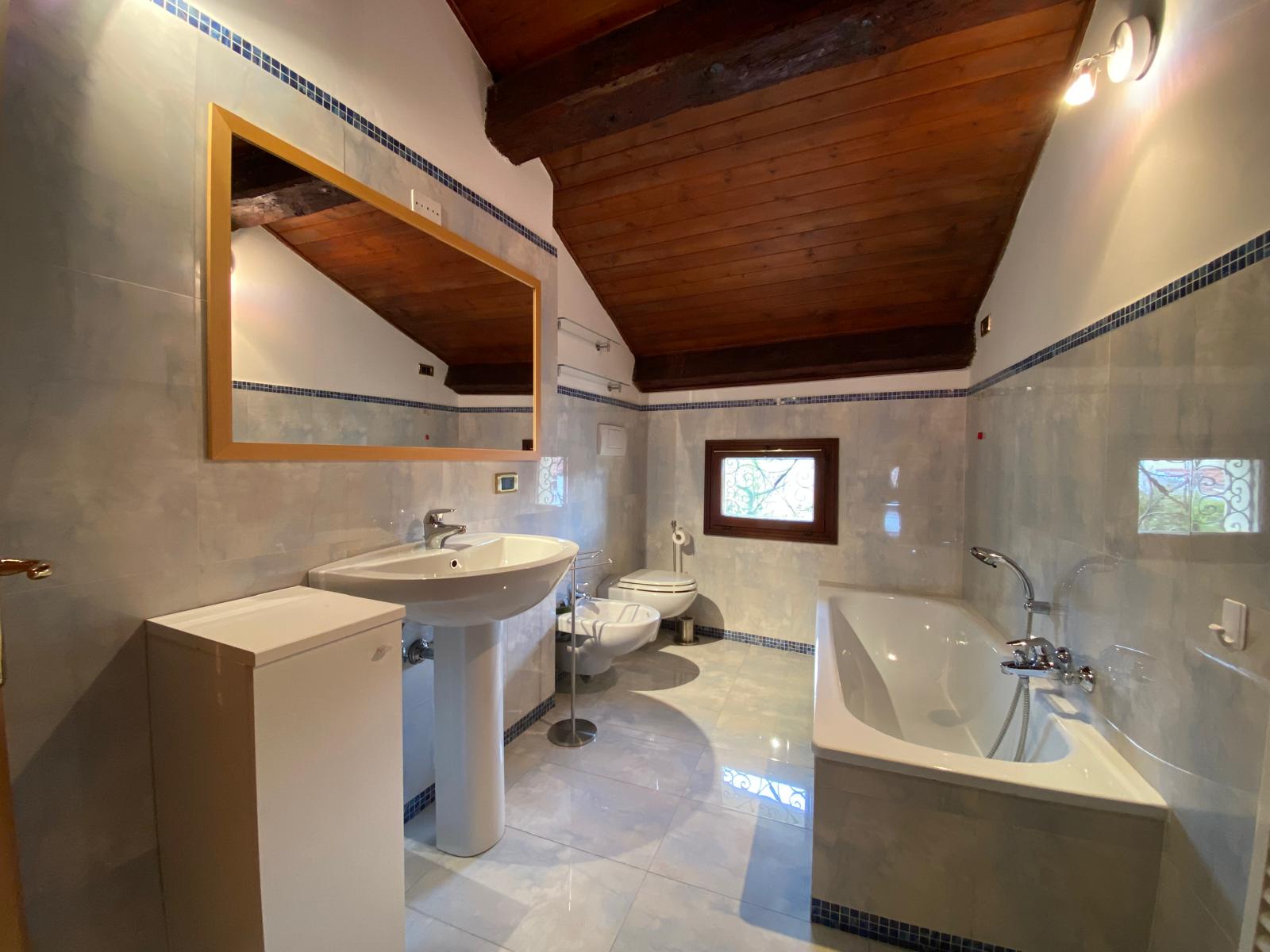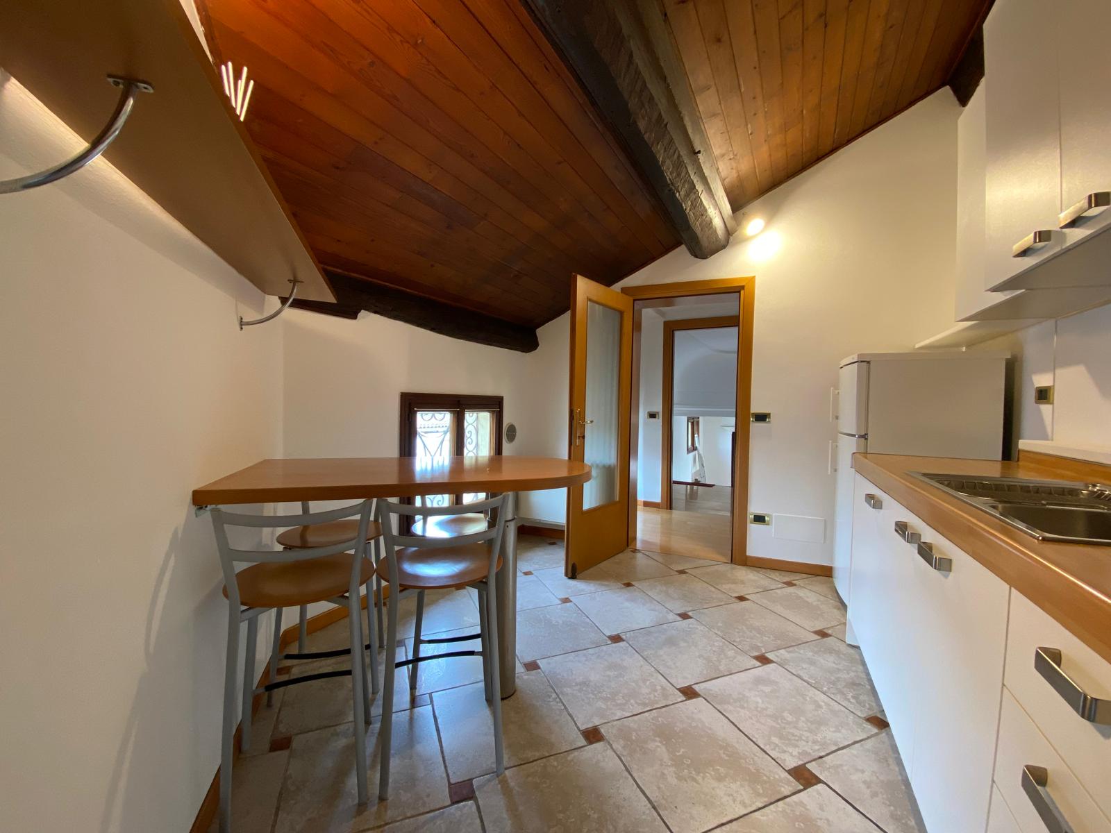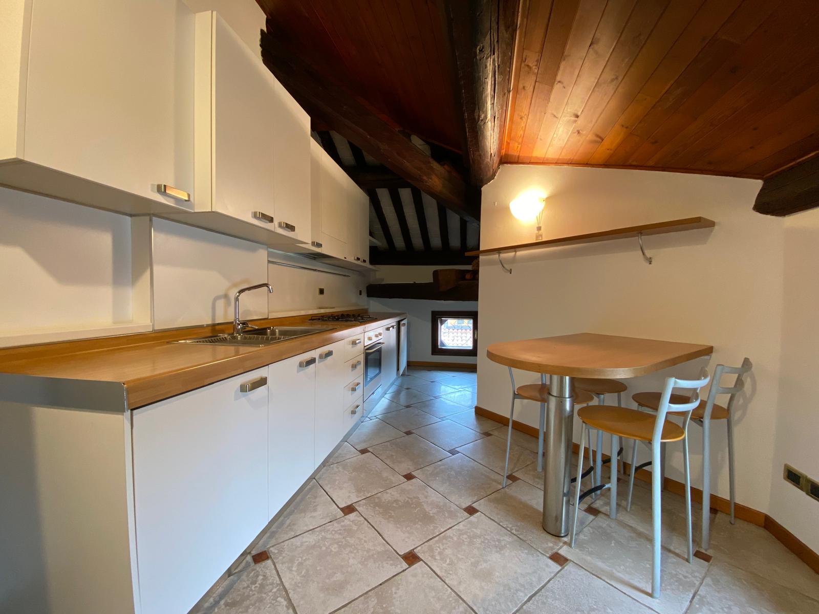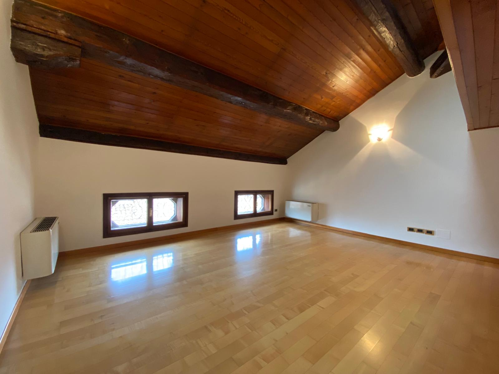 L’appartamento presenta travature a vista, ottime altezze ed è parzialmente arredato.